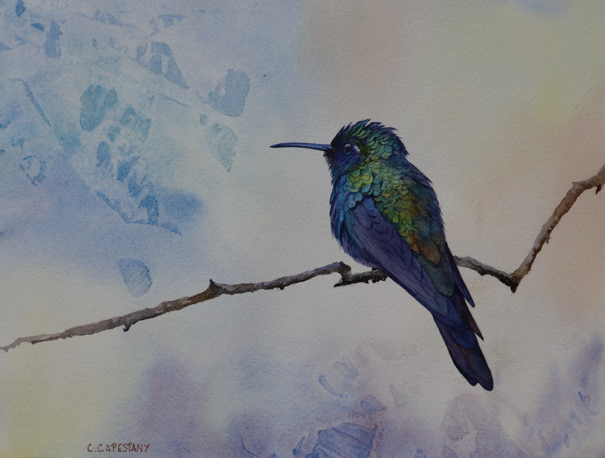 I’m a Virginia-based watercolorist whose paintings feature a wide range of topics from nature to travel scenes and everyday life. My artwork aims to engage the viewer with what surrounds us and, particularly, with the natural world. As an avid birdwatcher and wildlife enthusiast, some of my favorite subjects are birds. Rendering them in watercolor is my favorite part of the painting process, as I can play with their colors, textures, and shapes, and have fun portraying their expressions and poses.